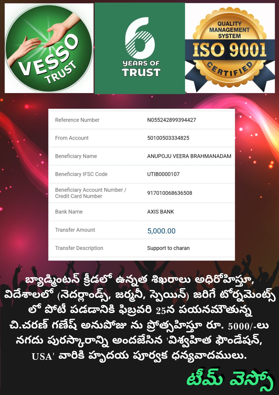 GOT FINANCIAL SUPPORT